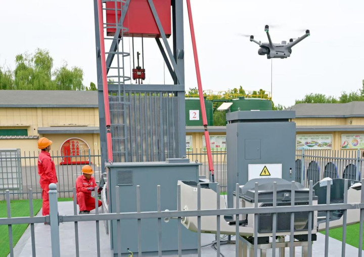 按照“就近覆盖、互补联动”的原则,现河采油厂织就覆盖主要生产区域的“15分钟巡检圈”,实现了油区重点区域应急响应与常规巡检的快速触达。“以前人工巡检较偏远的油井,一来一回就得大半天。现在,飞手操控无人机40分钟就能完成一圈巡检,还能实时传回来重点区域的高清画面。”六户采油管理区辛154注采站站长刘金章的话,道出了设备升级带来的效率变革。
